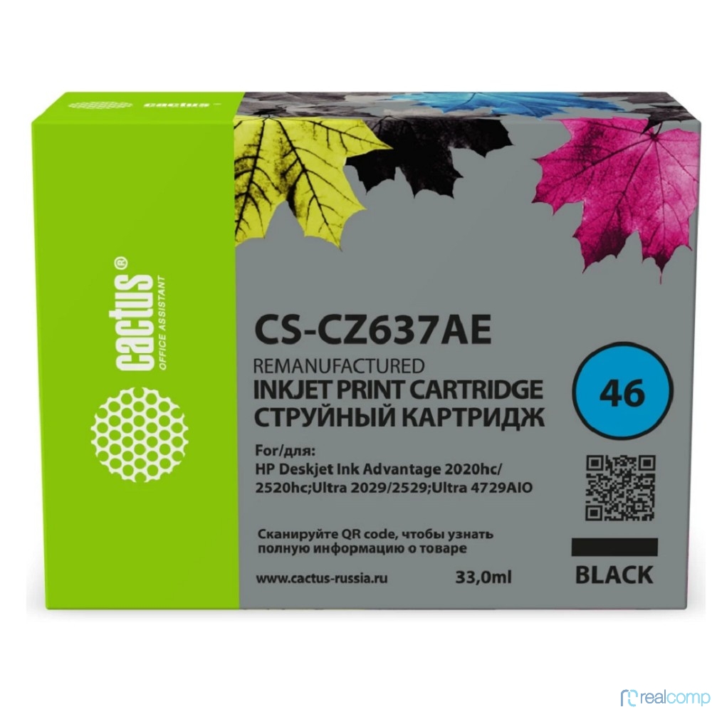 Картридж струйный Cactus CS-CZ637AE № 46 черный (33мл) для HP DJ IA 2020hc/2520hc;Ultra 2029/2529;Ultra 4729AIO