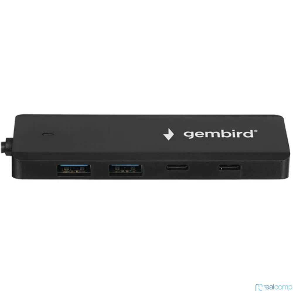Gembird Разветвитель USB3.1 2xUSB, 2xType-C, с доп.пит (Type-C),кабель Type-C 19см, черный, коробка (UHB-C425)