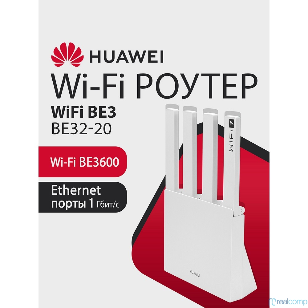 HUAWEI 53030CFJ WUKUN-BE32-20 WiFi BE3 Маршрутизатор, WiFi 7 BE3600 802.11a/b/g/n/ac/ax/be, 1 LAN 10/100/1000M/2500M, 3 LAN 10/100/1000M