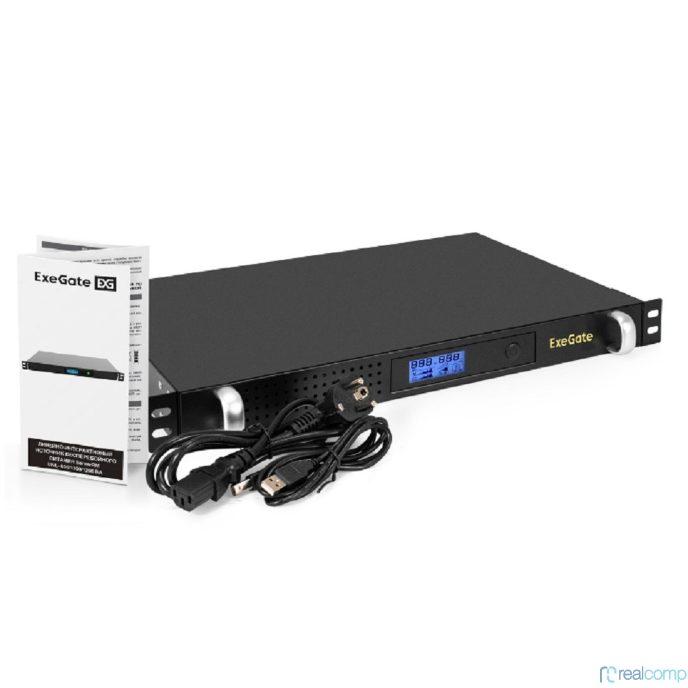 Exegate EX297833RUS ИБП 1U ServerRM UNL-650.LCD.AVR.4C13.RJ.USB.1U <650VA/360W, LCD, AVR, 4*C13, RJ, USB, 1U, установка в стойку, Black>