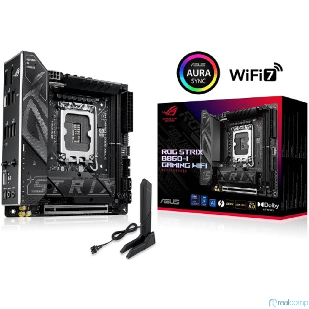 ASUS ROG STRIX B860-I GAMING WIFI (Socket 1851, mITX, 2xDDR5(128GB), DP/HDMI, 1xPCIe 5.0x16, 1xLAN(2.5GbE), Wi-Fi, BT, Thunderbolt 4, 4xSATA 6Gb/s, 2xM.2, 2xType-C, 4xUSB 3.2, 2xUSB 2.0)