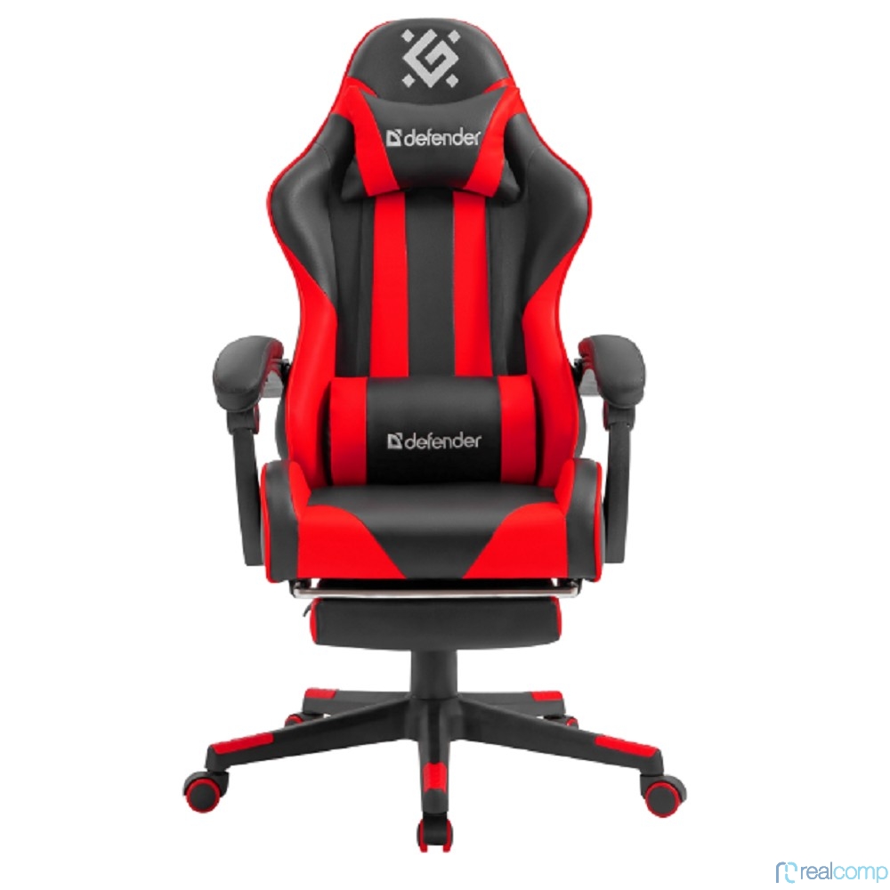 Игровое кресло Rock Черный/Красный,подставка, PU DEFENDER