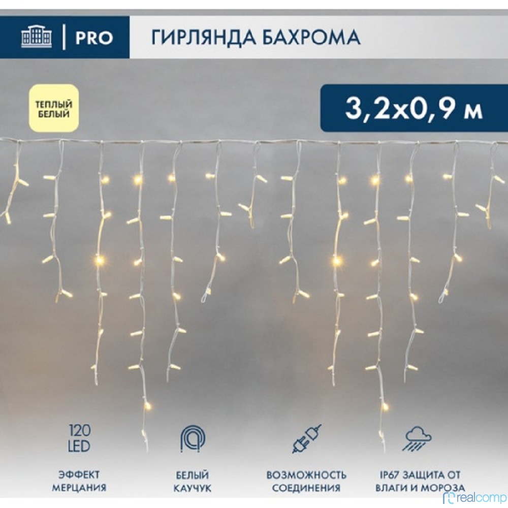 Neon-Night (255-466) Гирлянда Светодиодная Бахрома (Айсикл) 3,2Х0,9М 120 Led Теплый Белый Белый Каучук 3,3Мм Ip67 Эффект Мерцания 230В Нужен Блок 315-001
