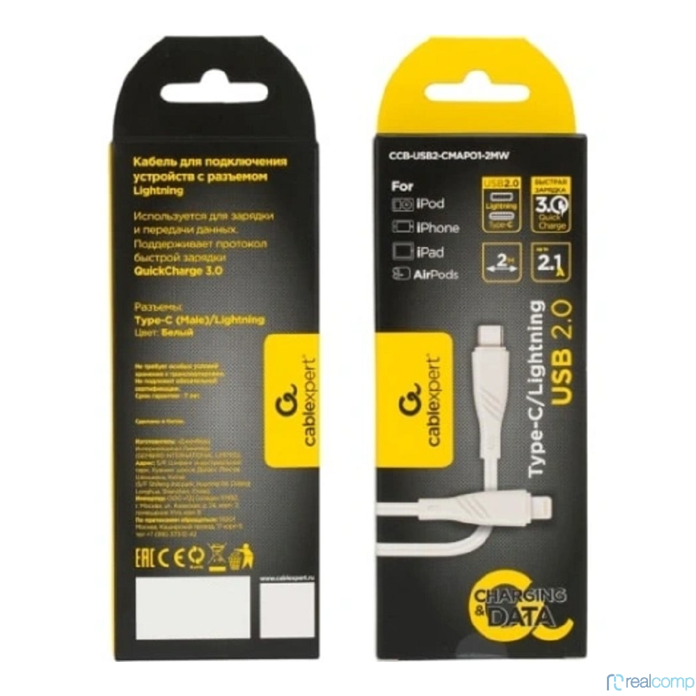 Cablexpert Кабель USB2.0 Lightning/Type-C, 2.1А, 20Вт, PD, медь, Mobile1, 2м, белый, коробка (CCB-USB2-CMAPO1-2MW)