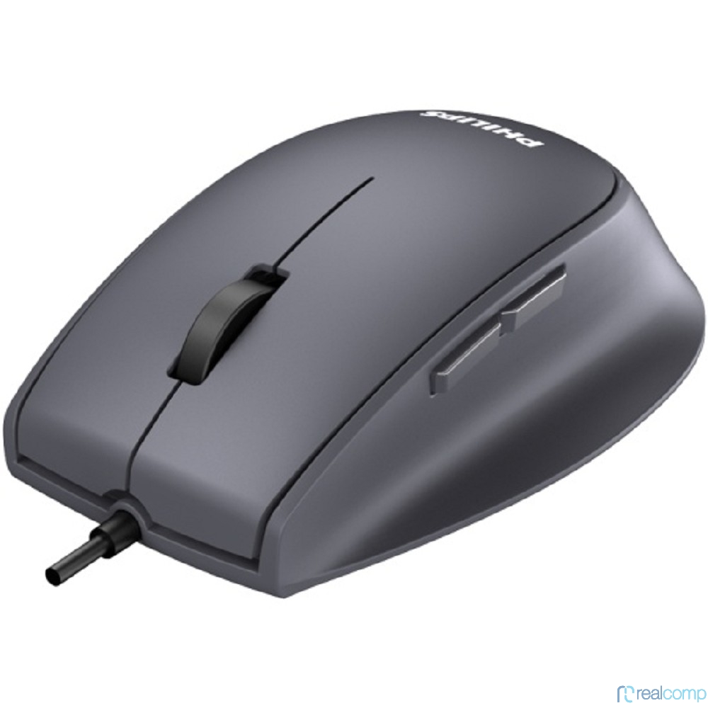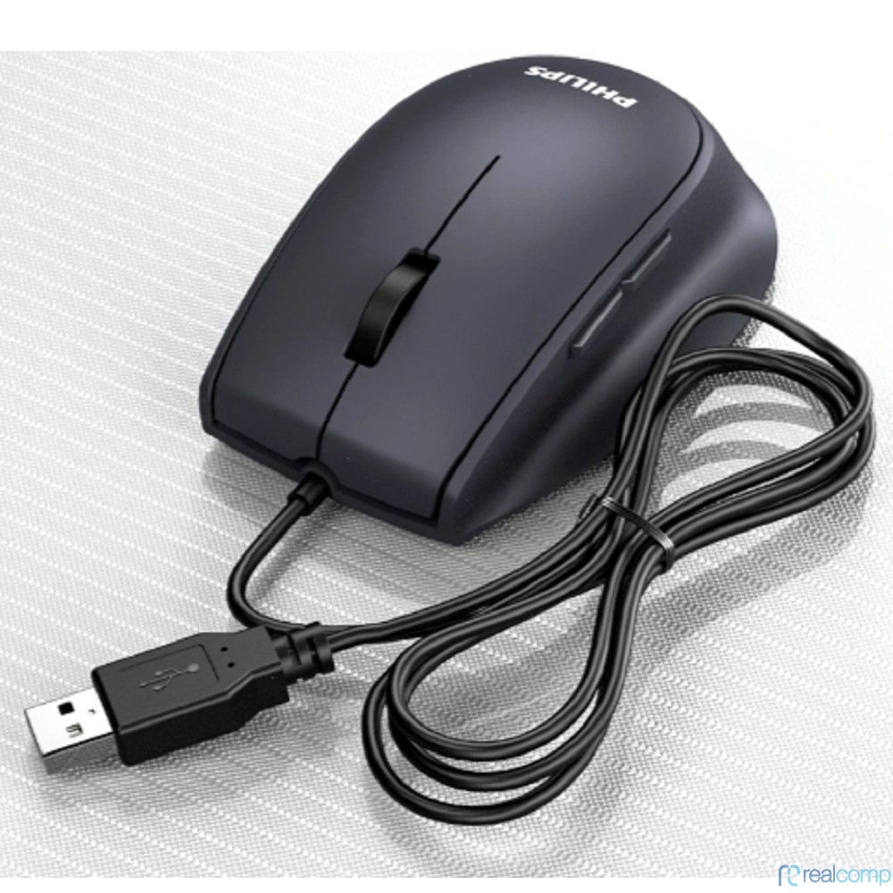 Philips Проводная Мышь SPK7327, 5 кноп., USB 2.0, 1600dpi, бесшумная, Чёрный
