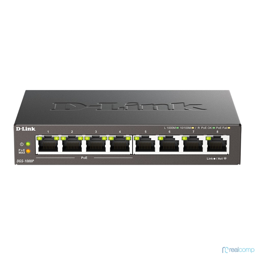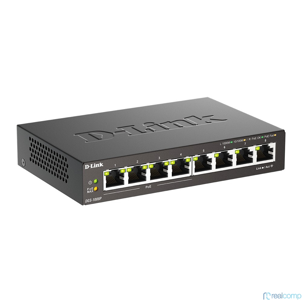 D-Link DGS-1008P/F3A Неуправляемый коммутатор с 8 портами 10/100/1000Base-T (4 порта PoE 802.3af/at, PoE-бюджет 60 Вт)