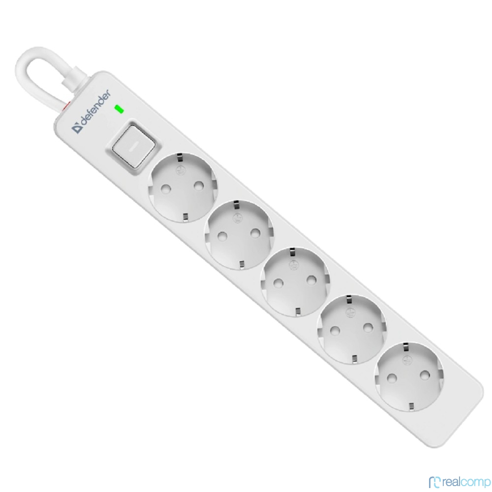 Defender Удлинитель с сетевым фильтром DFS 133 3 м, белый, 5 розеток [99431]