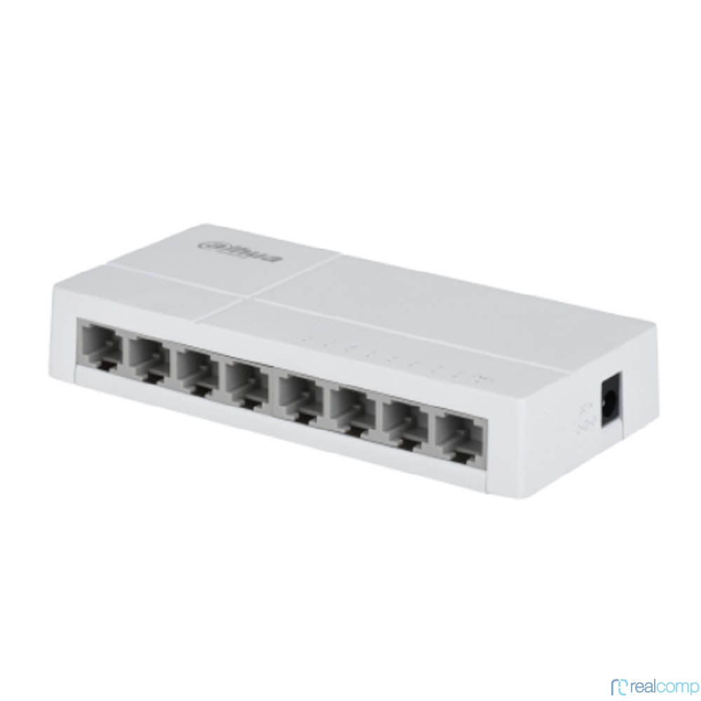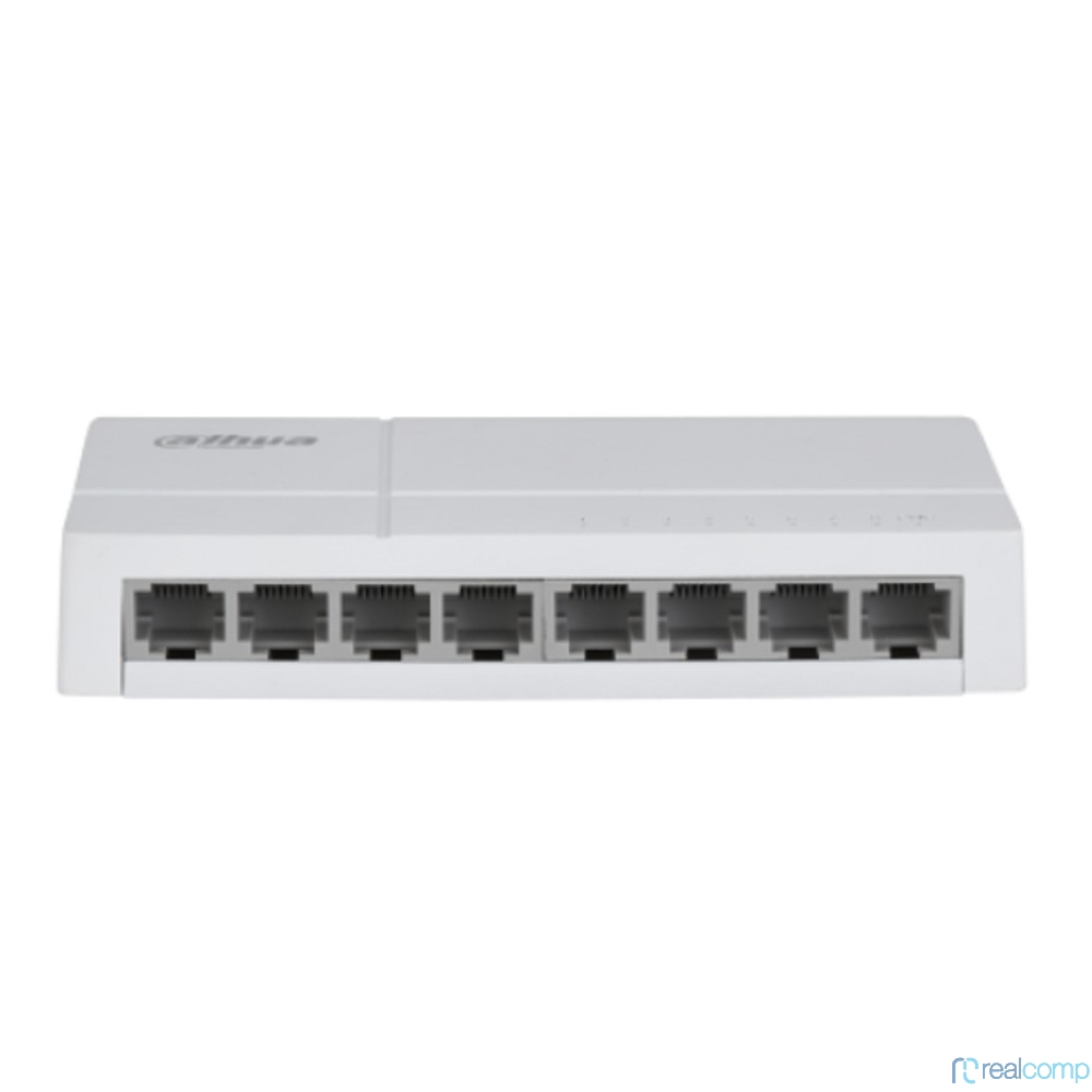DAHUA DH-SF1008L 8-портовый неуправляемый коммутатор, 8x10/100 Base-T, коммутация 1.6 Гбит/с, MAC-таблица 2K, пластик