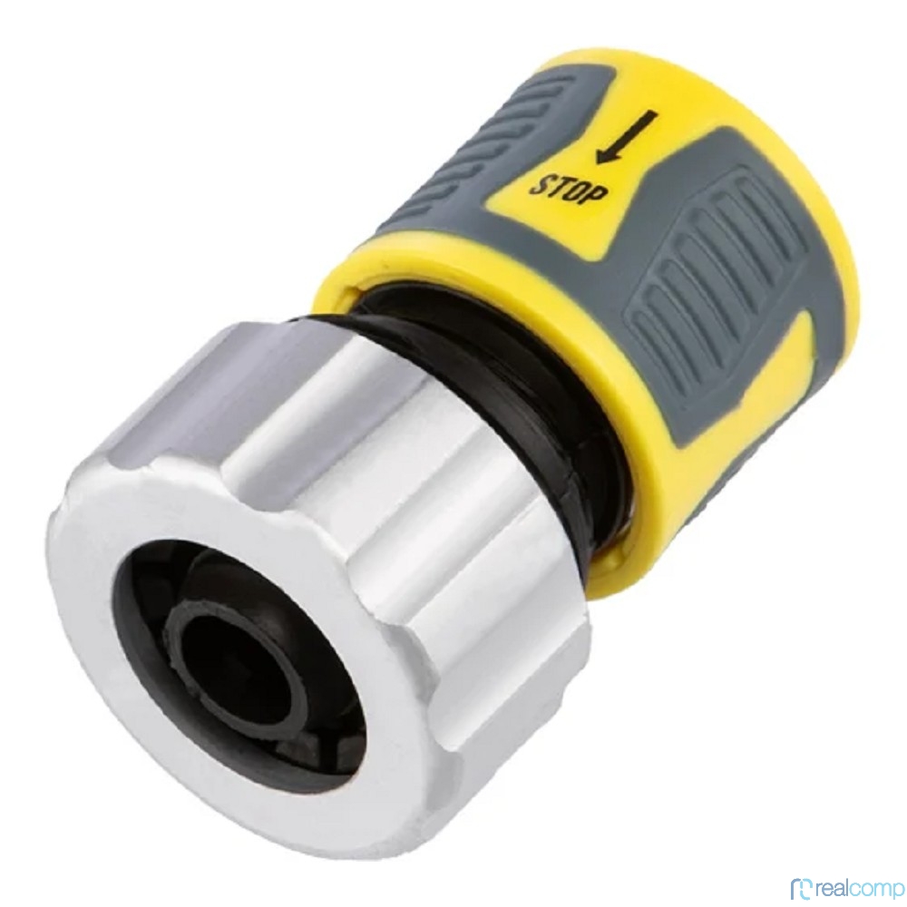 Rexant (62-0307-F) Коннектор для шланга, быстросъемный, 3/4", с аквастопом с зажимной шайбок из цинка