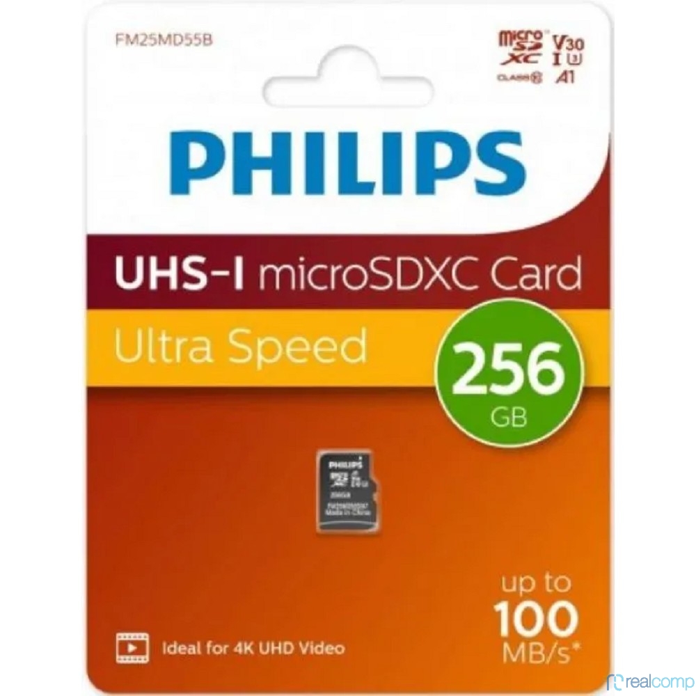 Micro SecureDigital 256GB Philips High Speed microSDHC Class UHS-I U3, V30, A1, 100MB/s