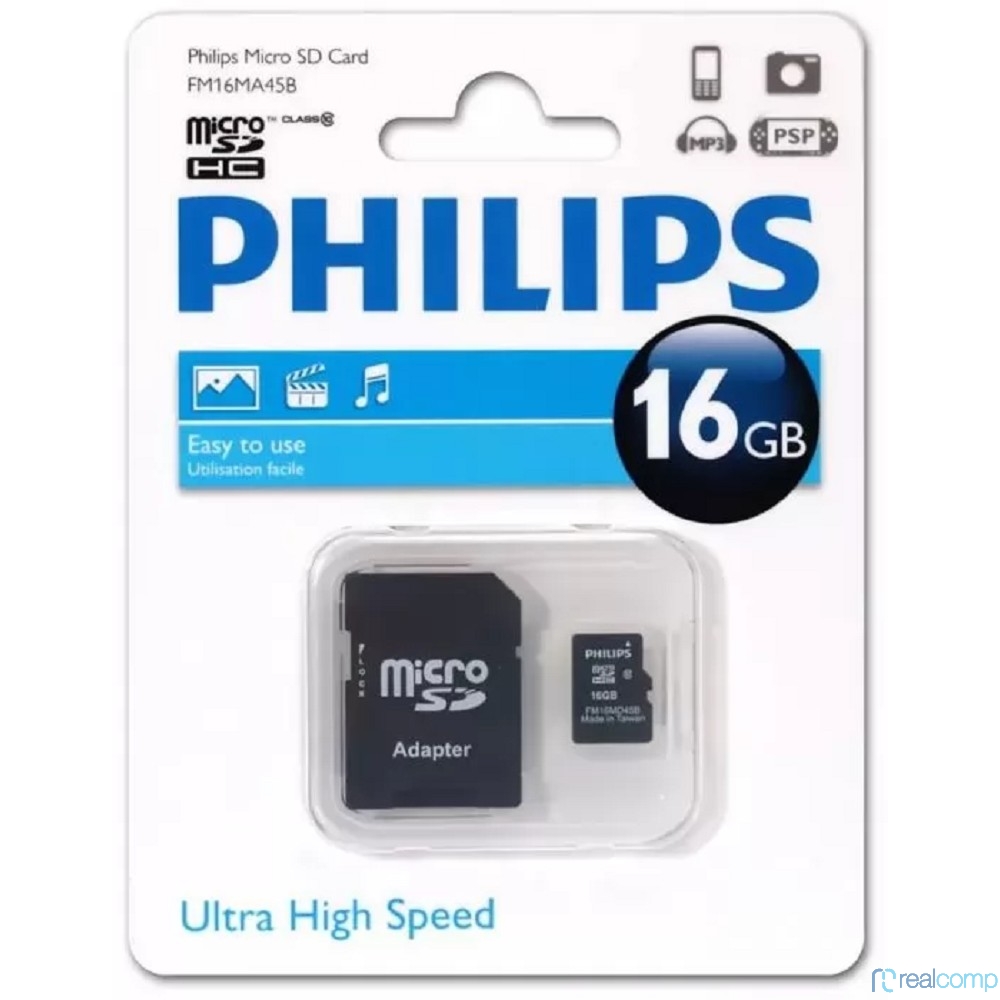 Micro SecureDigital 16GB Philips microSDHC Class 10 (SD адаптер) (FM16MA45B/97)