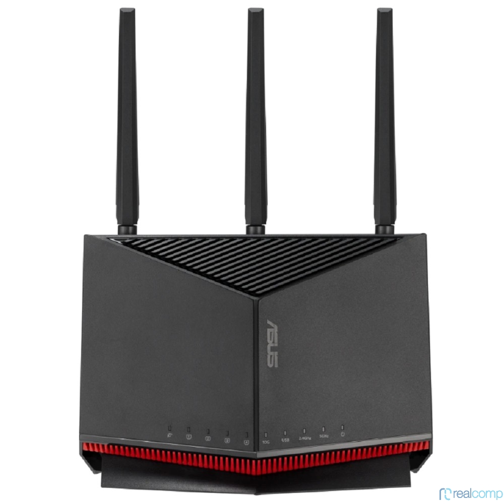 ASUS RT-BE86U Роутер беспроводной 4 LAN, 10000 Мбит/с, 2500 Мбит/с, 1000 Мбит/с, 4 (802.11n), 5 (802.11ac), 6 (802.11ax), 7 (802.11be), Wi-Fi 6796 Мбит/с, 1 x USB 3.2, 3G, 4G/LTE, IPv6, черный