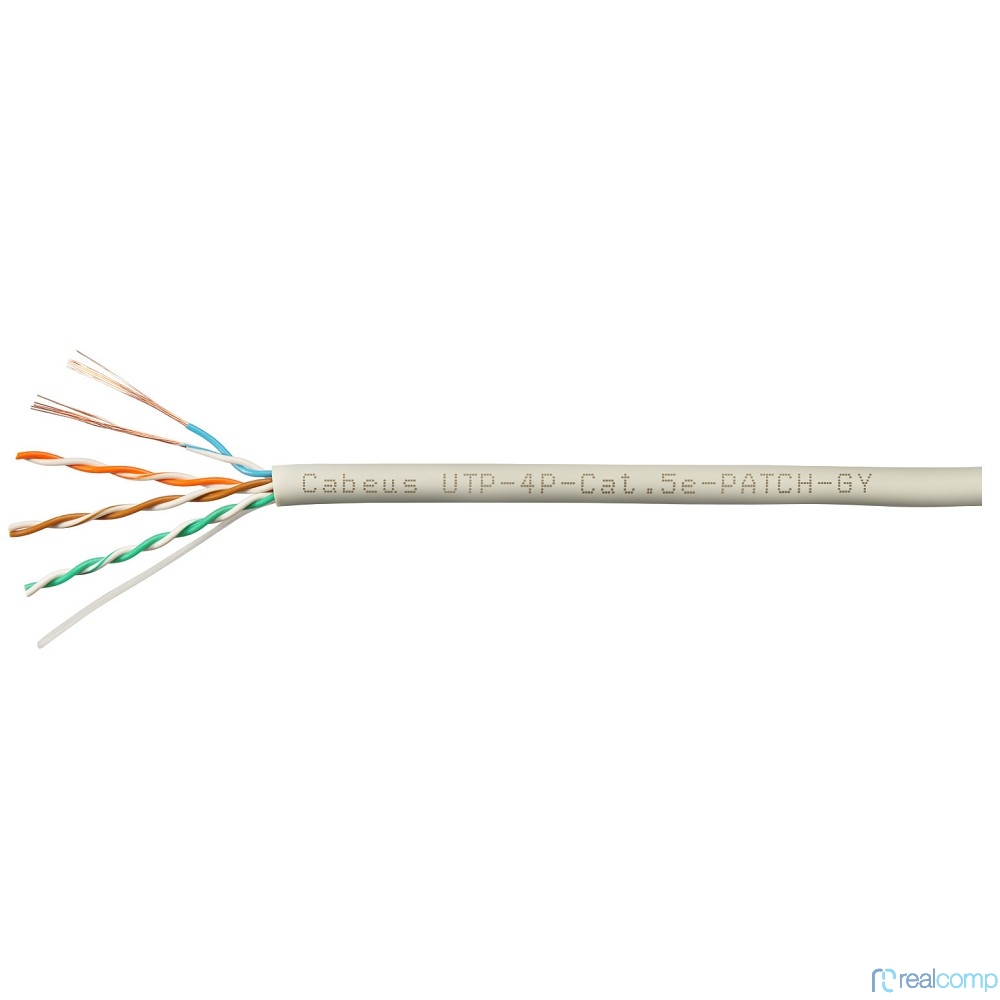 Cabeus UTP-4P-Cat.5e-PATCH-GY Кабель витая пара UTP (U/UTP), категория 5e, 4 пары, (24 AWG), многожильный, PVC нг(А)-LS, серый (305 м)