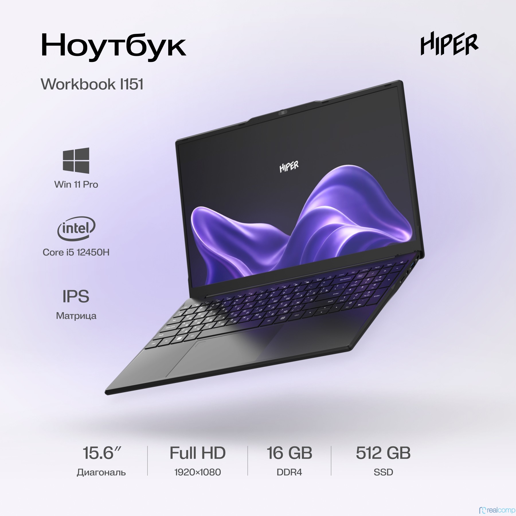 Hiper Workbook I151 [FWBC151-I512HR16N5FABWPG] Black 15.6" {FHD IPS i5-12450H(2Ghz)/16Gb/512Gb SSD/W11Pro}