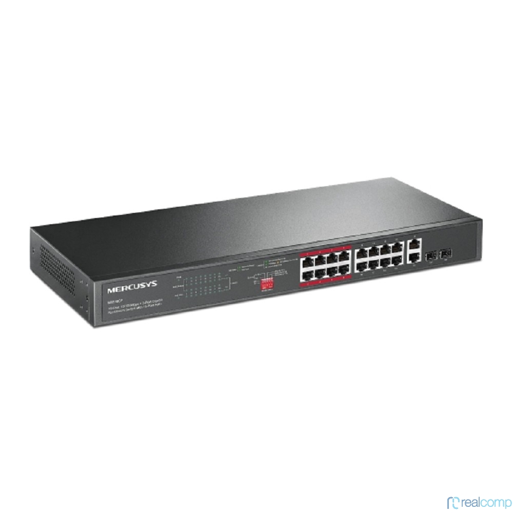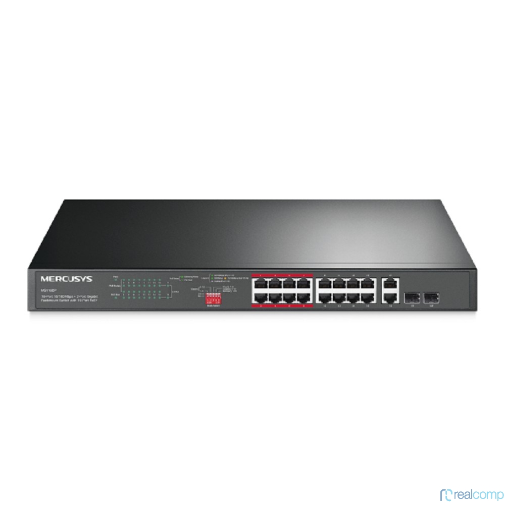 Mercusys MS118CP 16-портовый монтируемый в стойку PoE+ коммутатор 10/100 Мбит/с с 2 гигабитными портами