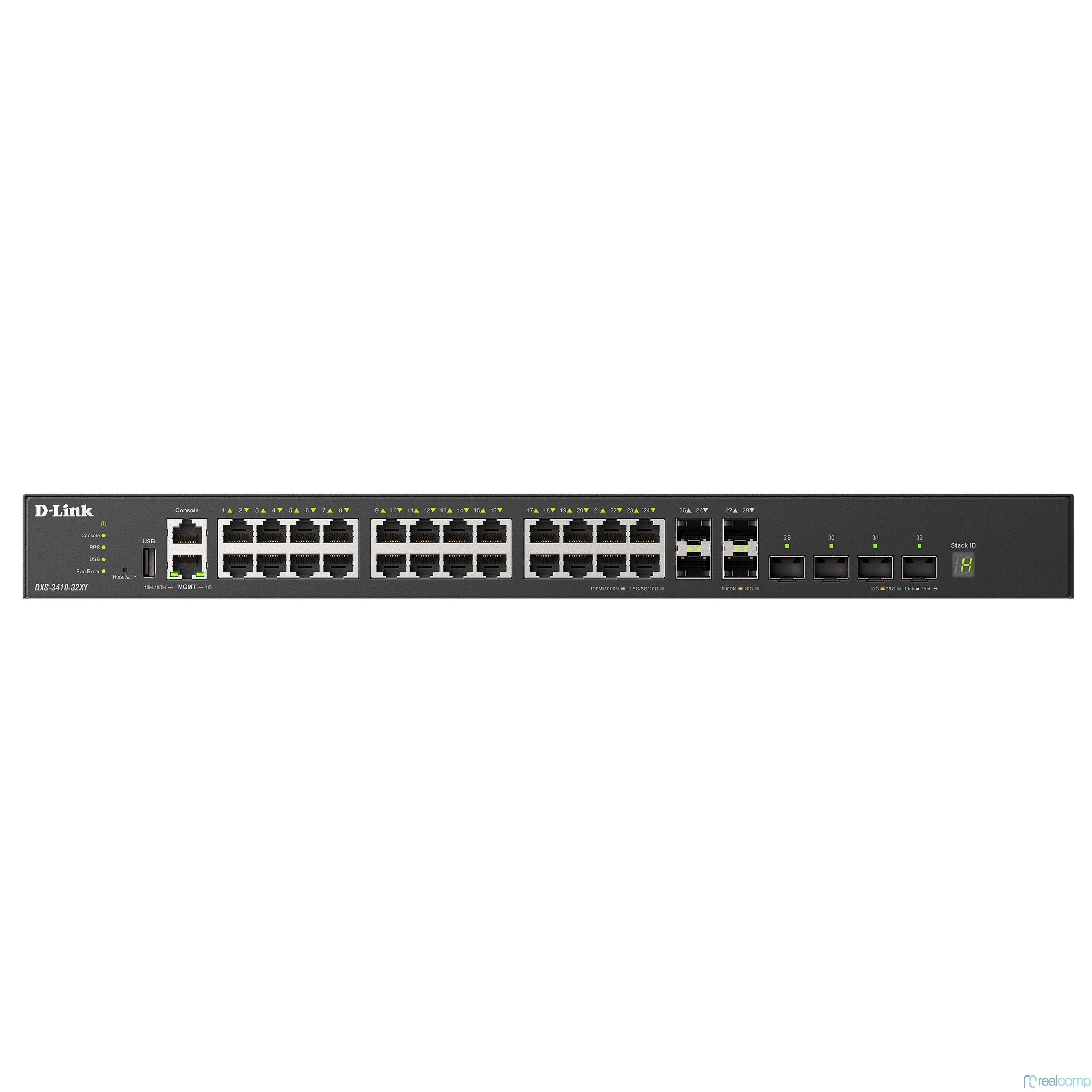 D-Link DXS-3410-32XY/A1A Управляемый L3 стекируемый коммутатор с 24 портами 10GBase-T, 4 портами 10GBase-X SFP+ и 4 портами 25GBase-X SFP28