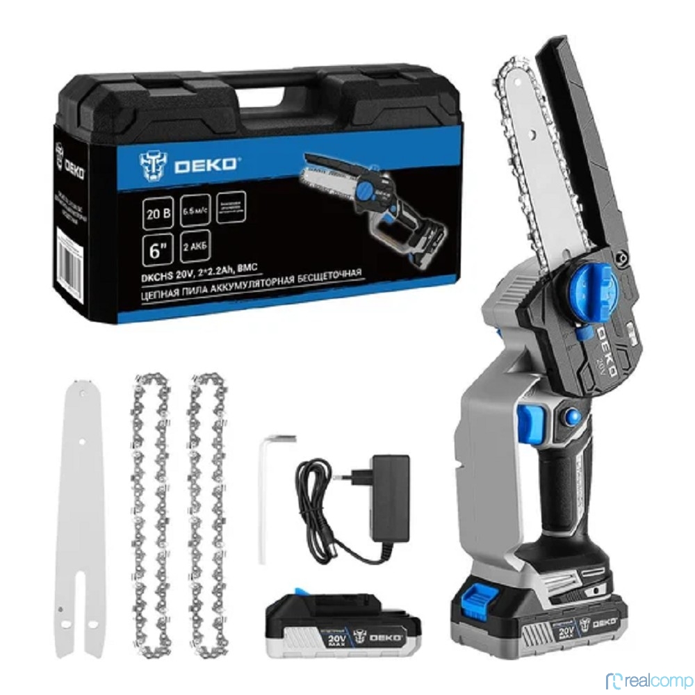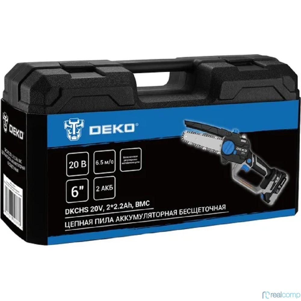 DEKO DEKO DKCHS 20V Пила цепная аккумуляторная бесщеточная [083-2014] { 20В, 2x2.2Ач, 2 шины и 3 цепи в кейсе }