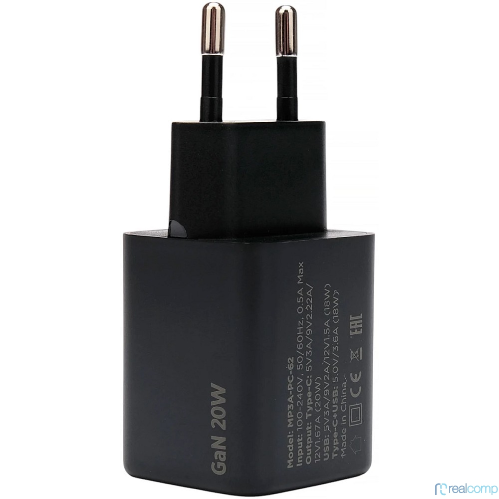 Cablexpert зарядное устройство 20Вт GaN, 3А, QC4.0/PD, 1xUSB, 1xType-C, черный, пакет (MP3A-PC-62)