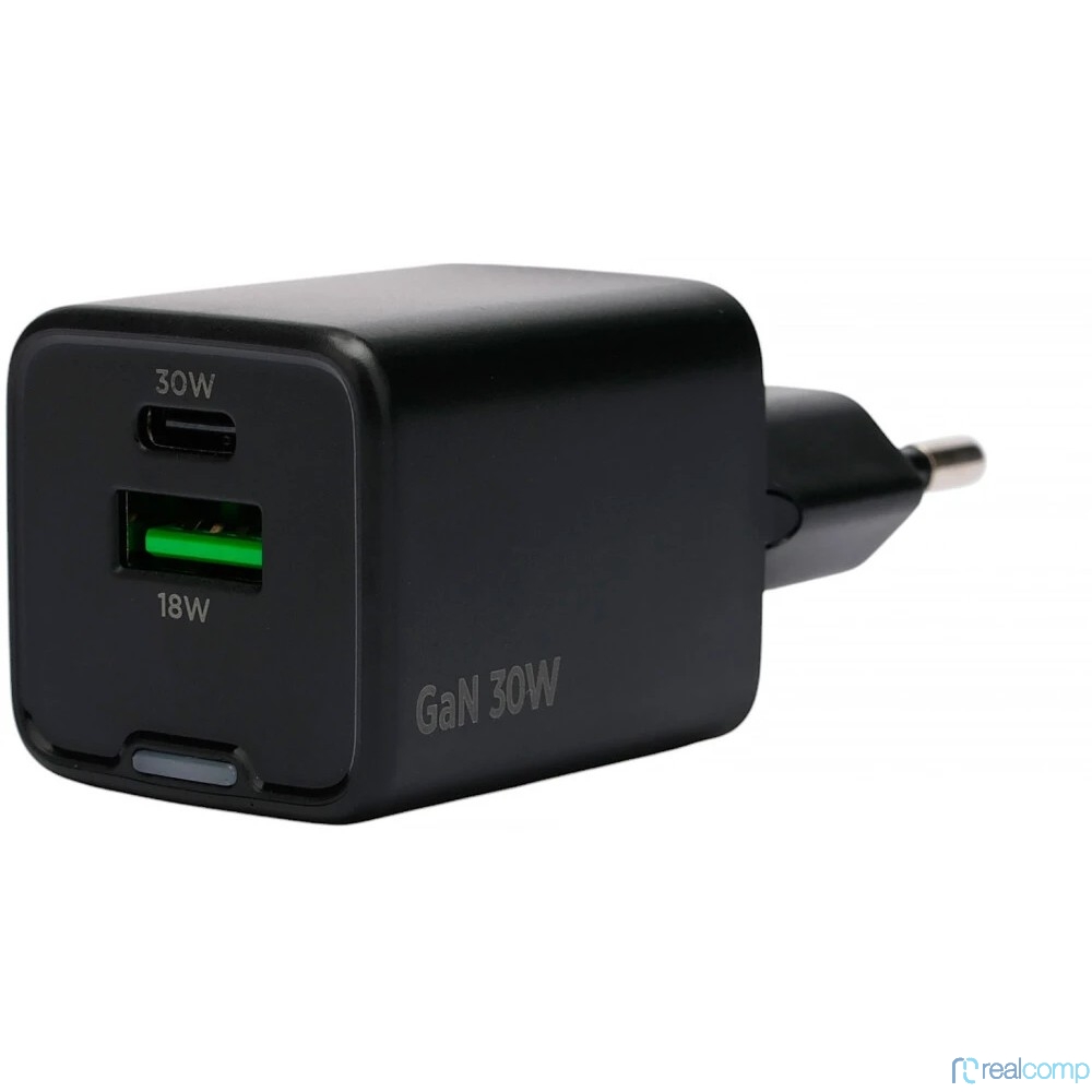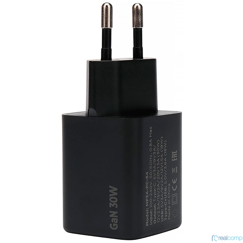 Cablexpert зарядное устройство 30Вт GaN, 3А, QC4.0/PD, 1xUSB, 1xType-C, черный, пакет (MP3A-PC-64)