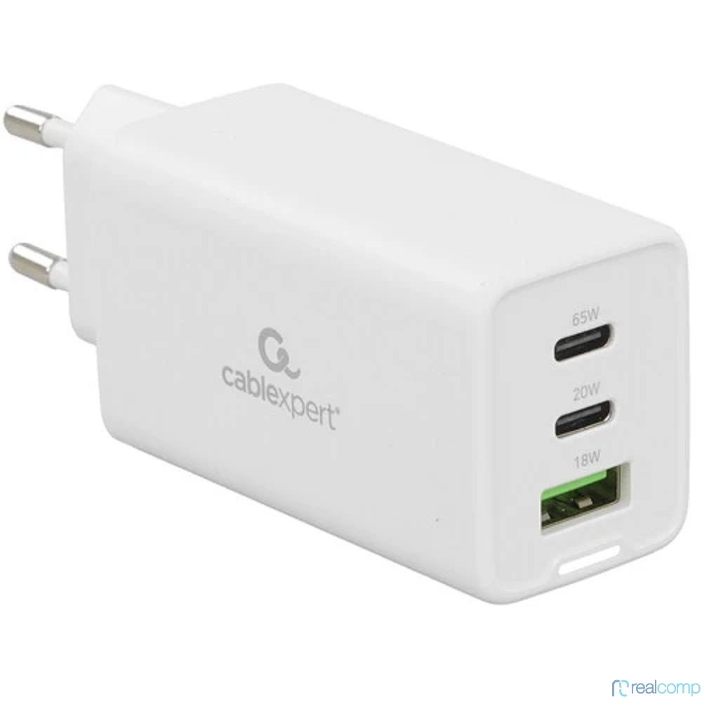 Cablexpert зарядное устройство 65Вт GaN, 3.25A, QC4.0/PD, 2xType-C, 1xUSB, белый, коробка (MP3A-PC-65)