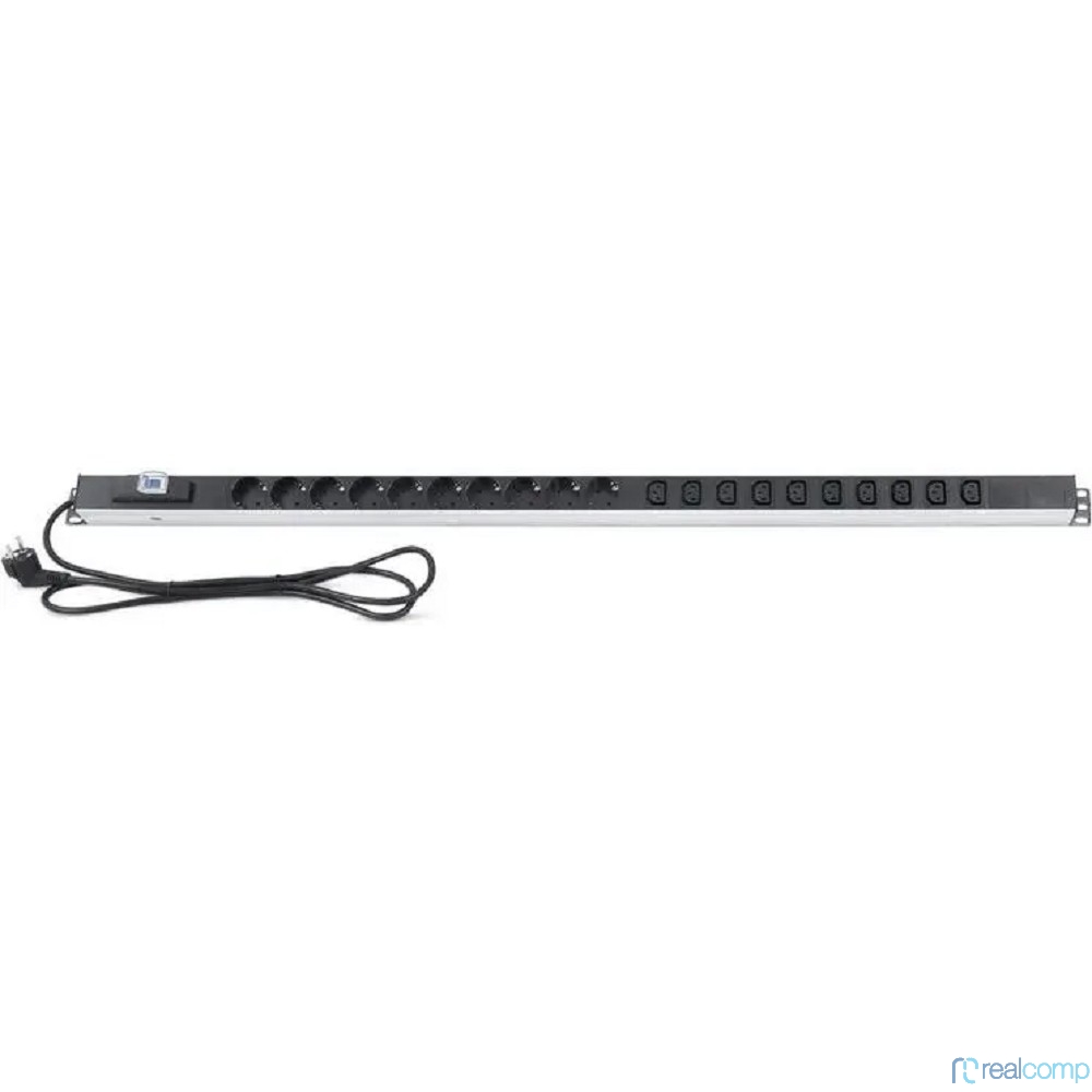 Rexant (04-2605) Блок распределения питания для 19" шкафов, верт, 10 розеток СЕЕ 7/4, 10 розеток C13, 16А, автомат защиты, алюм корп, шнур 2м, вилка СЕЕ 7/7