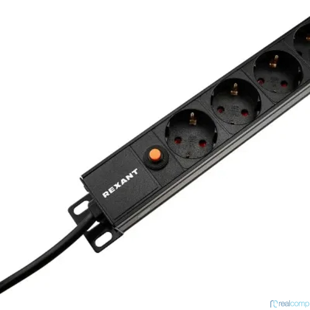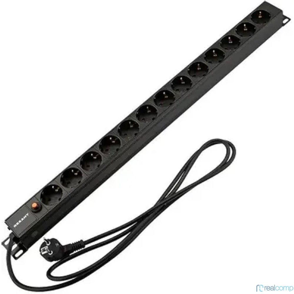 Rexant (04-0205-2) Блок распределения питания для 19" шкафов, вертикальный, 13 розеток СЕЕ 7/4, 16A, фильтр, без выкл, алюм корп, шнур 2м, вилка СЕЕ 7/7