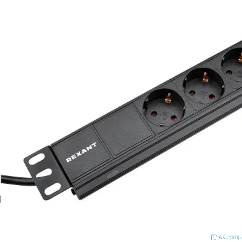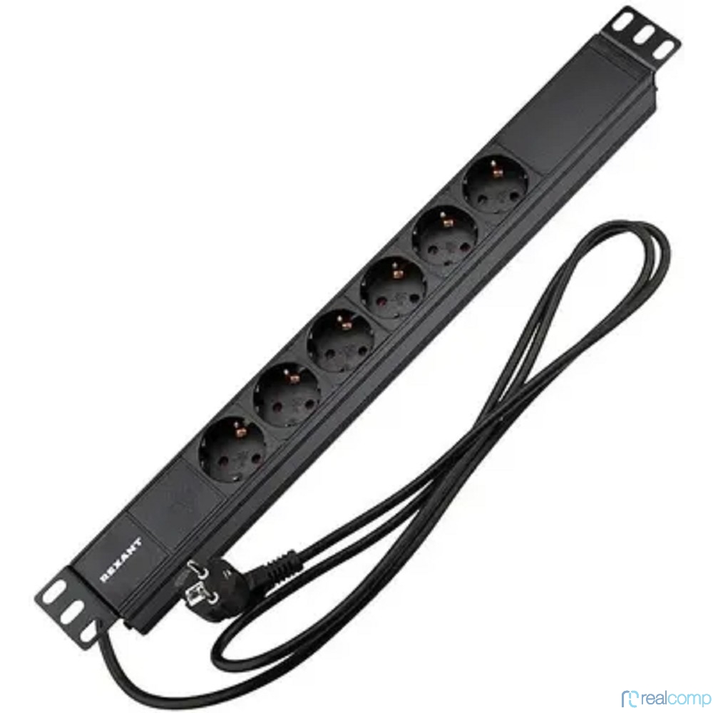Rexant (04-0101-1) Блок распределения питания для 19" шкафов, горизонтальный, 6 розеток СЕЕ 7/4, 16A, без выкл, алюм корп, шнур 2м, вилка СЕЕ 7/7