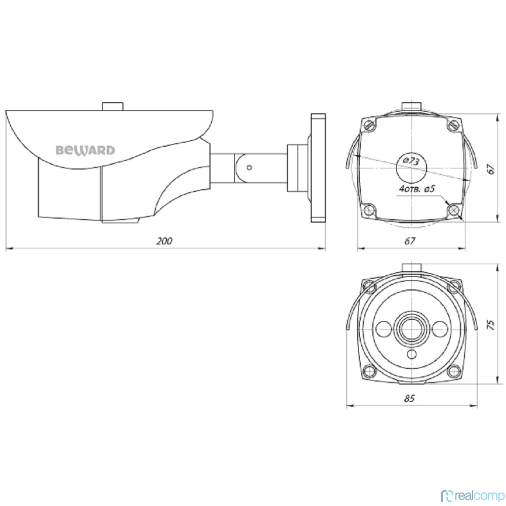 BEWARD CD630 IP-Камера 1 Мп, 1/4'' КМОП, 0.1 лк (день)/0.05 лк (ночь), DWDR, 2D/3DNR, объектив 2.8/3.6/6/12/16 мм на выбор, H.264, 1280x720, 25 к/с,