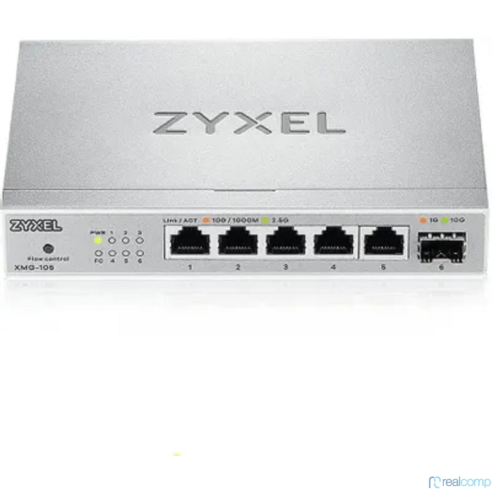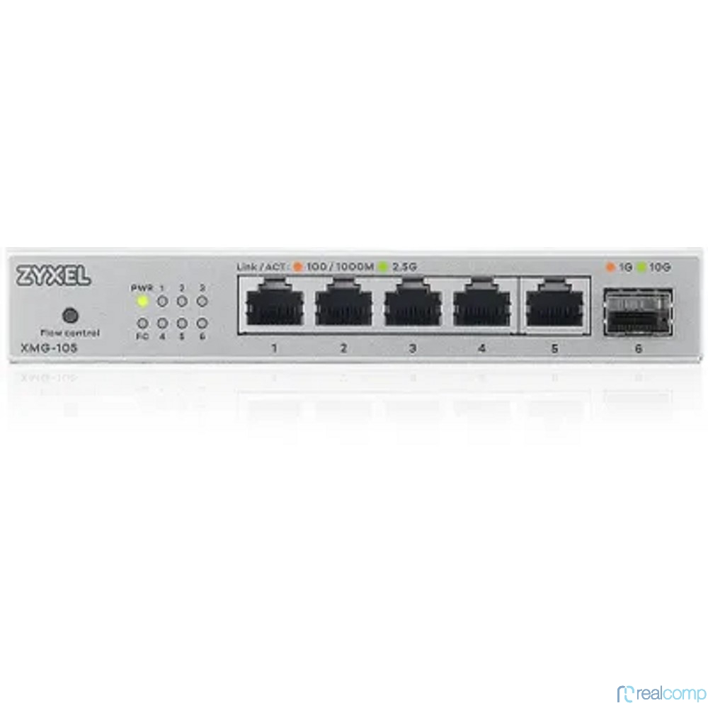 Коммутатор/ Мультигигабитный коммутатор Zyxel XMG-105, 5xRJ-45: 1/2.5G, 1xSFP+, настольный, бесшумный