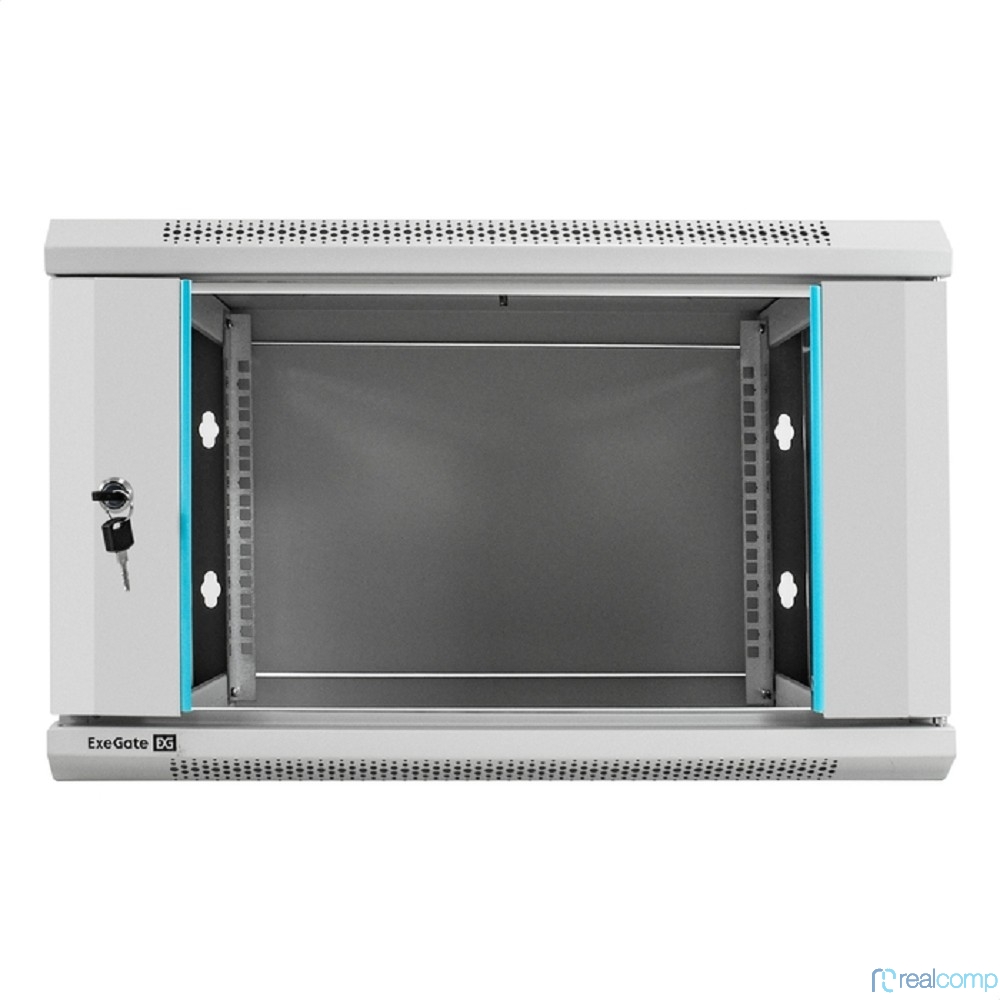 Exegate EX298599RUS Шкаф телекоммуникационный 19" настенный 6U ExeGate EC-WM-6U.450.G.GREY (19”, 6U, 600x450x370mm (ШхГхВ), передняя дверь закаленное стекло, съемные боковые панели, пыле- и влагозащит
