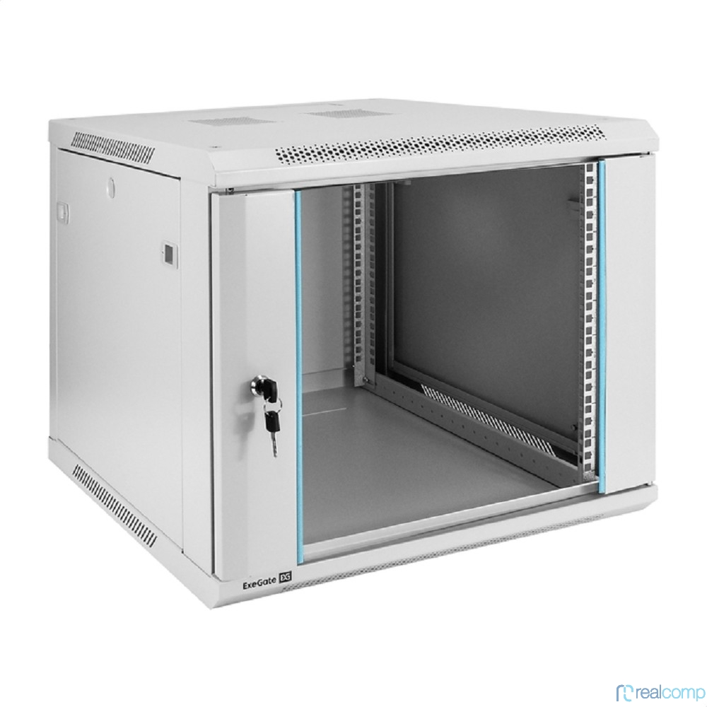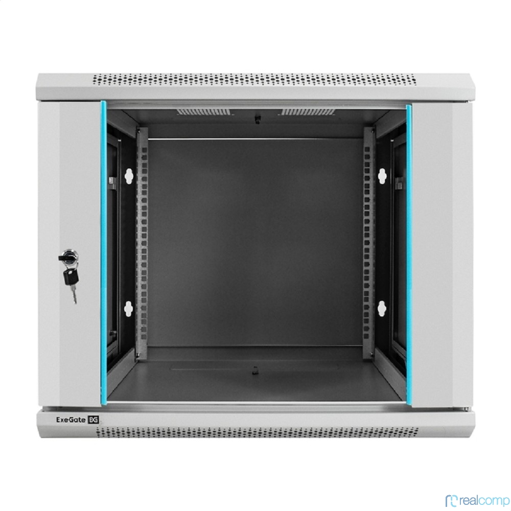 Exegate EX298602RUS Шкаф телекоммуникационный 19" настенный 9U ExeGate EC-WM-9U.600.G.GREY (19”, 9U, 600x600x500mm (ШхГхВ), передняя дверь закаленное стекло, съемные боковые панели, пыле- и влагозащит