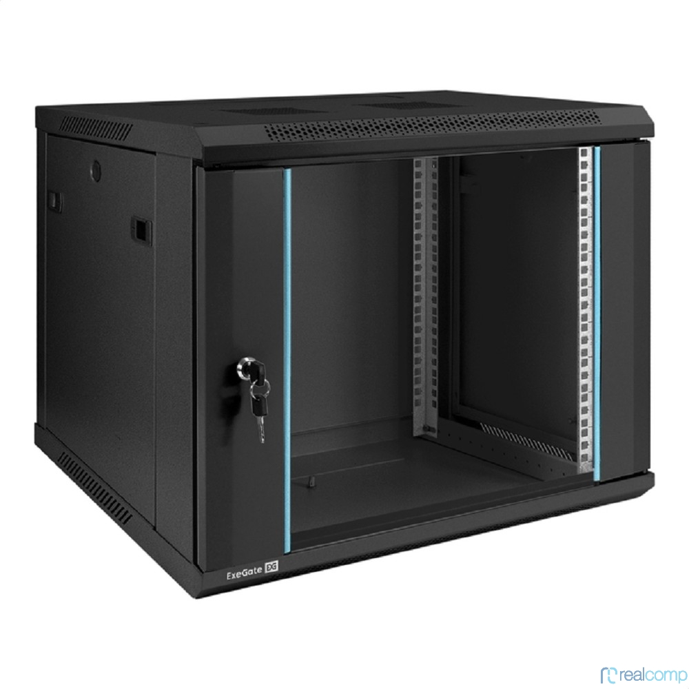 Exegate EX298607RUS Шкаф телекоммуникационный 19" настенный 9U ExeGate EC-WM-9U.450.G.BLACK (19”, 9U, 600x450x500mm (ШхГхВ), передняя дверь закаленное стекло, съемные боковые панели, пыле- и влагозащи