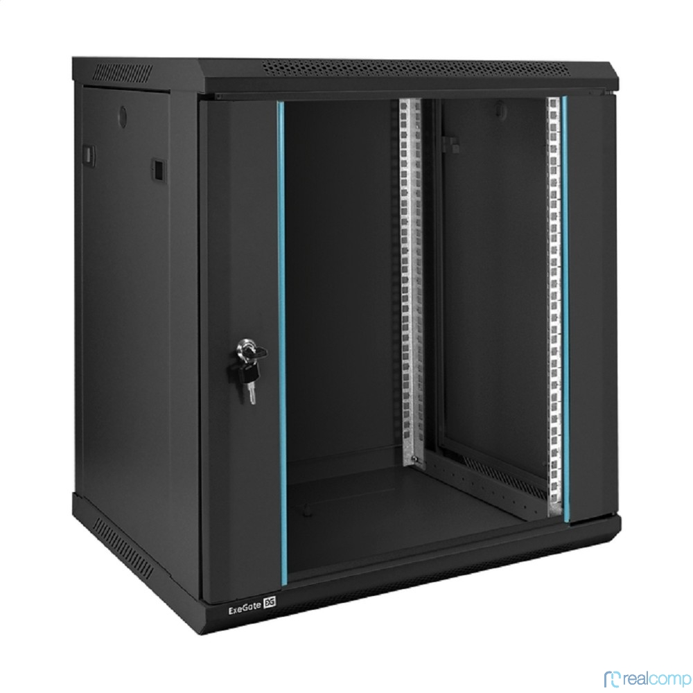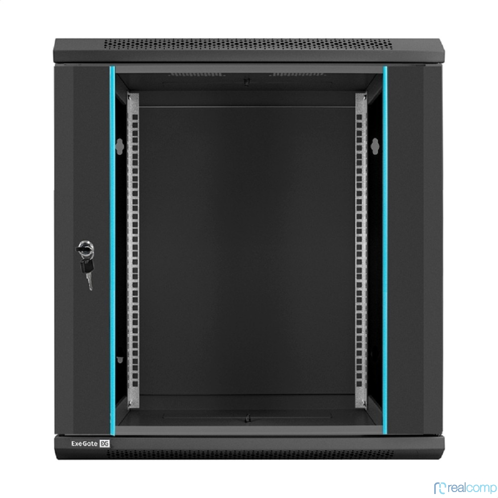 Exegate EX298609RUS Шкаф телекоммуникационный 19" настенный 12U ExeGate EC-WM-12U.450.G.BLACK (19”, 12U, 600x450x635mm (ШхГхВ), передняя дверь закаленное стекло, съемные боковые панели, пыле- и влагоз