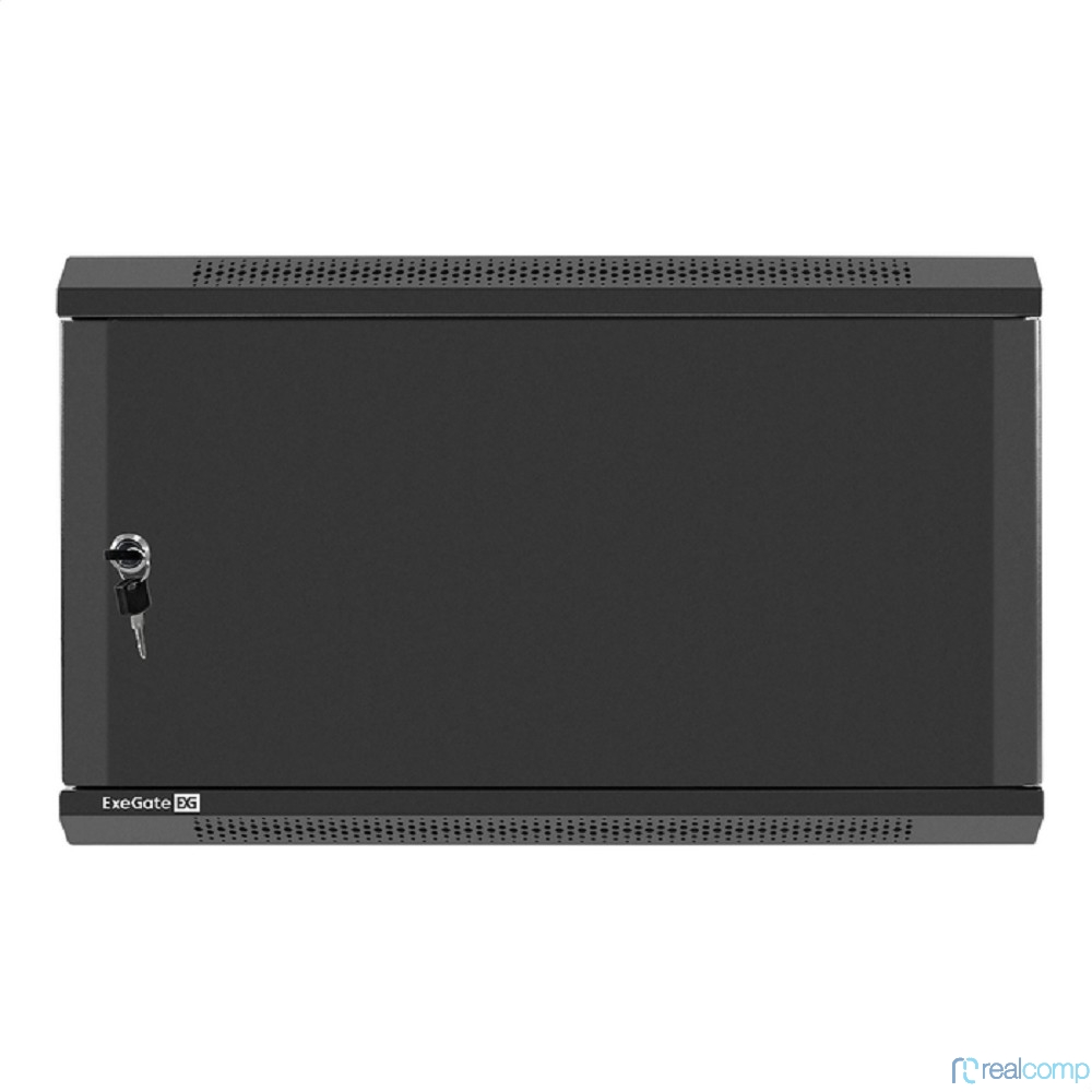 Exegate EX298617RUS Шкаф телекоммуникационный 19" настенный 6U ExeGate EC-WM-6U.450.M.BLACK (19”, 6U, 600x450x370mm (ШхГхВ), передняя дверь металл, съемные боковые панели, пыле- и влагозащита IP23, че