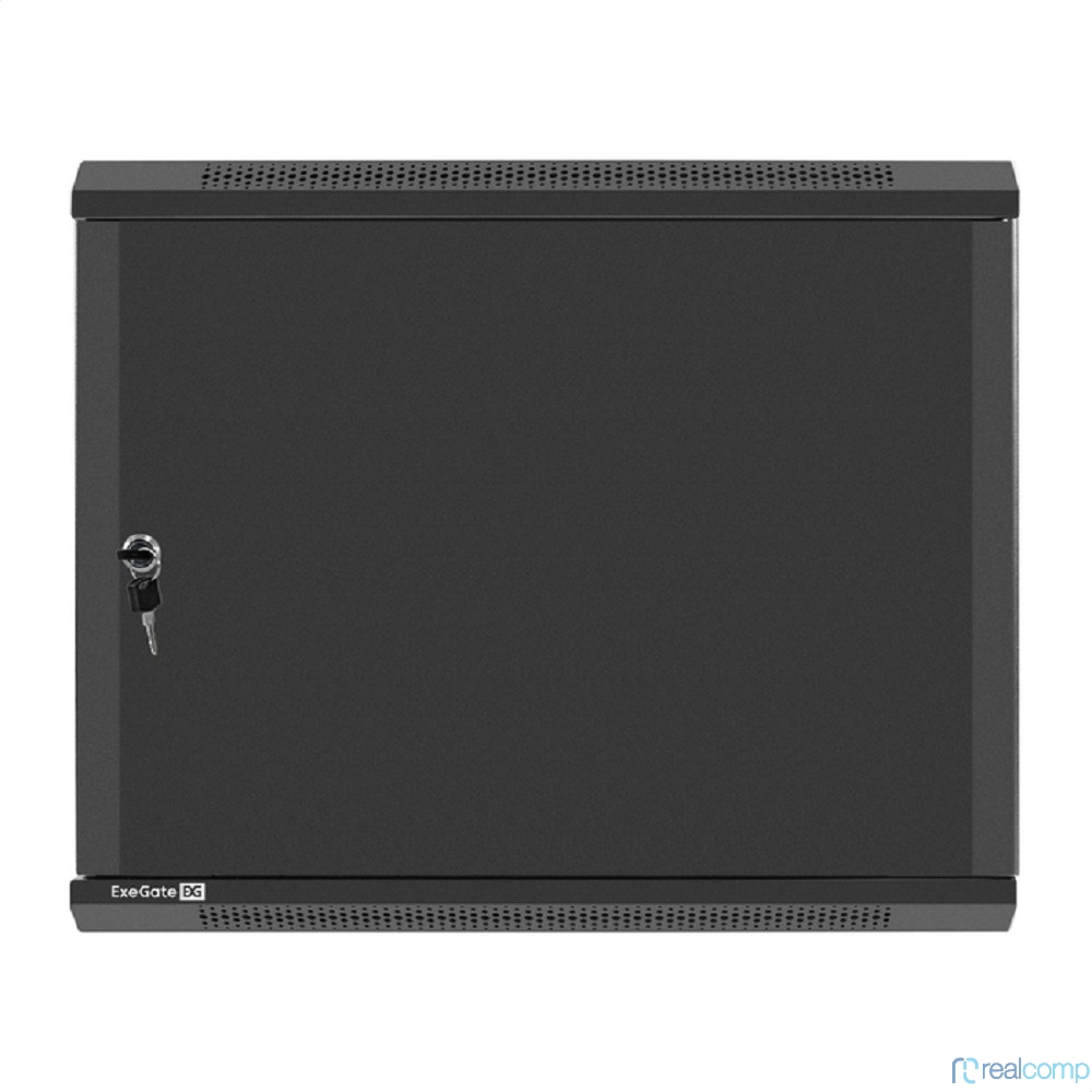 Exegate EX298619RUS Шкаф телекоммуникационный 19" настенный 9U ExeGate EC-WM-9U.450.M.BLACK (19”, 9U, 600x450x500mm (ШхГхВ), передняя дверь металл, съемные боковые панели, пыле- и влагозащита IP23, че