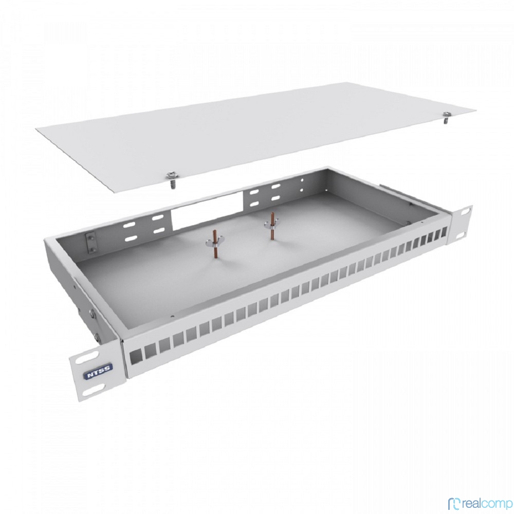 NTSS Кросс NTSS оптический 19'' частично укомплектованный 1U, 32 порта 2LC (сплошная панель, сплайс-кассета-2шт) серый RAL 7035 NTSS-RFOB-1U-32-2LC-S0000