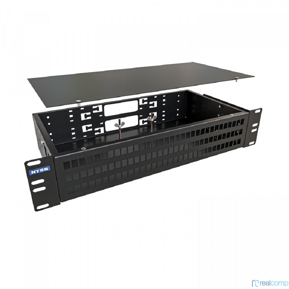 NTSS Кросс NTSS оптический 19'' укомплектованный 2U, 96 портов SC/APC, 9/125 мкм (сплошная панель, сплайс-кассета 3шт, пигтейлы, КДЗС, адаптеры) черный RAL 9005 NTSS-RFOB-2U-96-SC/A-9-SP1.5G0AY-BL