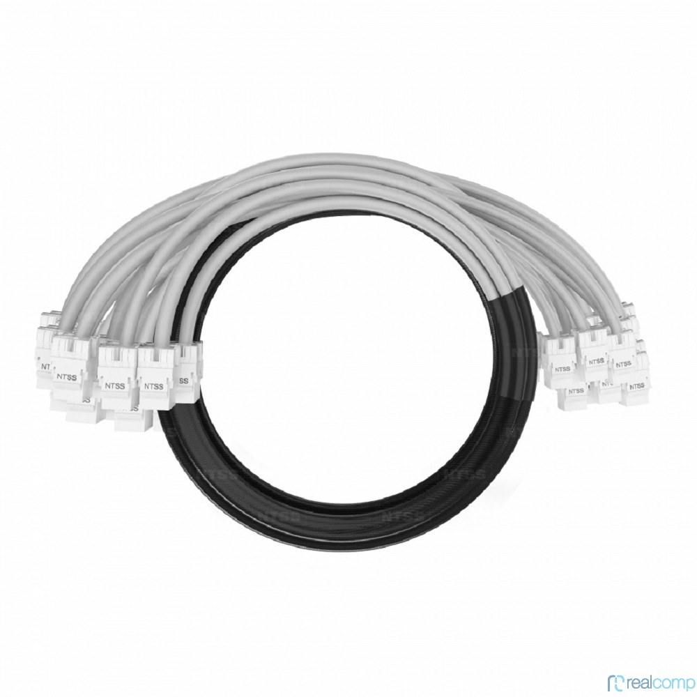 NTSS Кабельная сборка NTSS PREMIUM 24pc, UTP CAT5e, оконцована разъемами KEYSTONE RJ45 UTP CAT5e, заделка в чулке, вывод 0.6м, длина 4м, LSZH, серый NTSS-PC-PM-24-UTP-RJ45KJ-5e-S-0.6-4.0-LSZH-GY