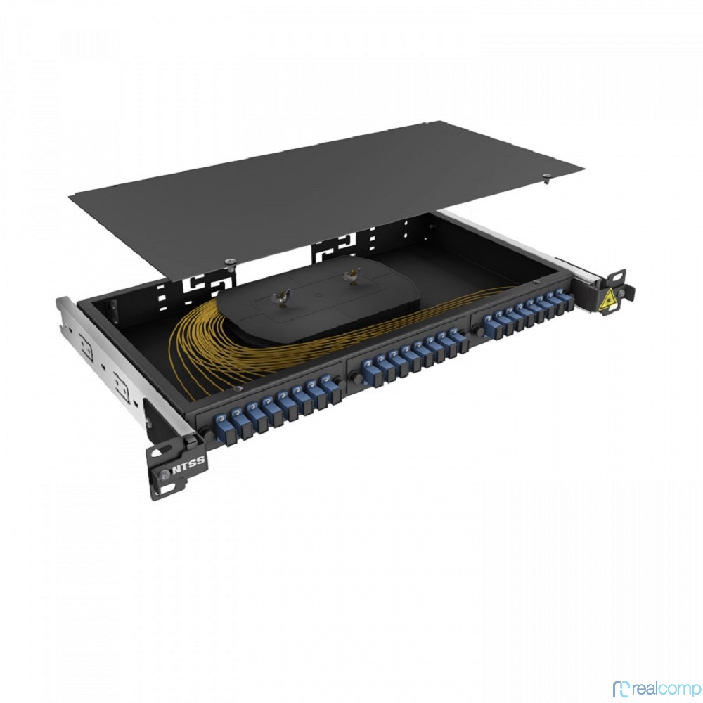 NTSS Кросс 19" NTSS PREMIUM выдвижной, предсобранный 1U, 16 портов SC/UPC, 9/125 мкм, (сплайс, пигтейлы, кдзс, планки, адаптеры), черный, RAL9005 NTSS-RsFOB-PM-1U-16-SC/U-9-SP1.5G1A-BL