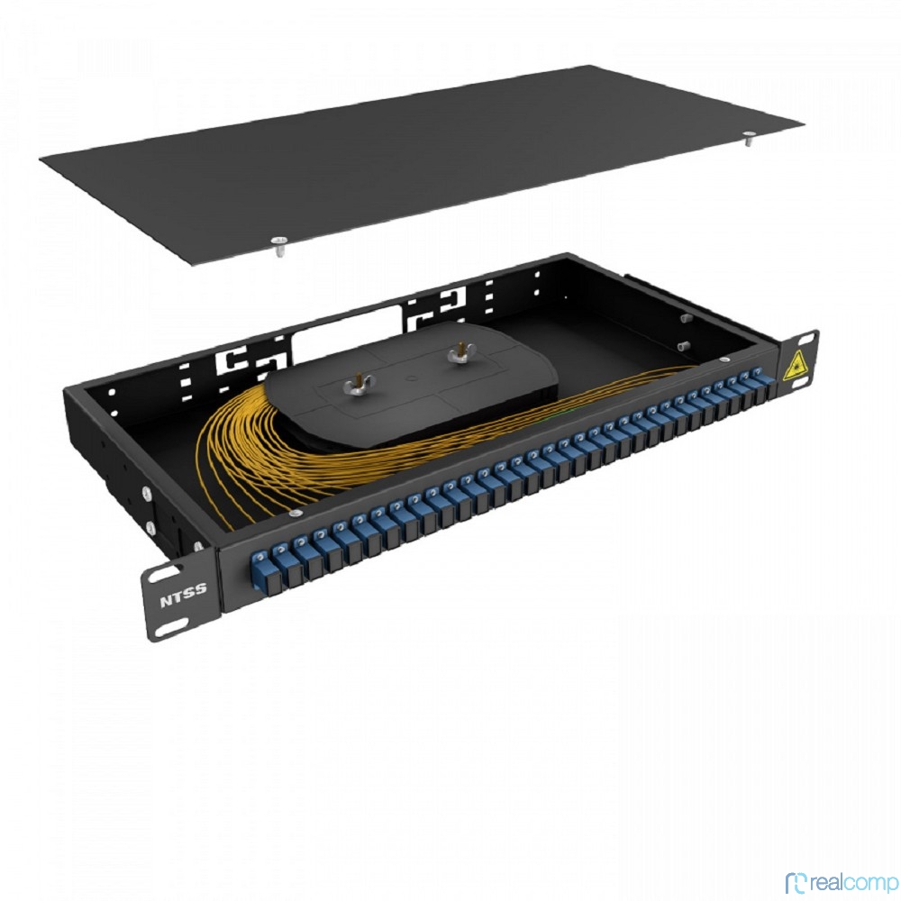 NTSS Кросс 19" NTSS PREMIUM, предсобранный 1U, 32 порта SC/UPC, 9/125 мкм, (сплошная панель, розетки, сплайс, КДЗС, пигтейлы), черный, RAL9005 NTSS-RFOB-PM-1U-32-SC/U-9-SP1.5G0A-BL