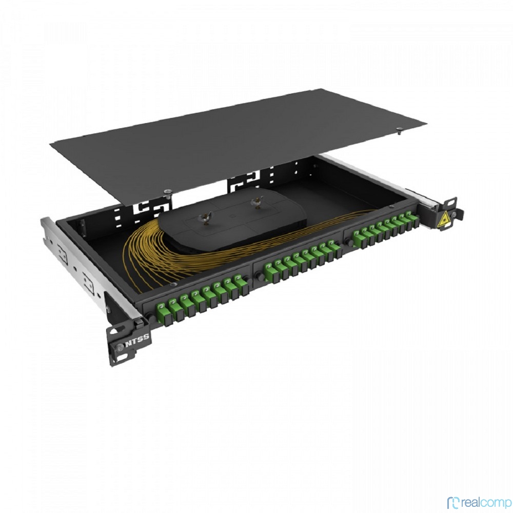 NTSS Кросс 19" NTSS PREMIUM выдвижной, предсобранный 1U, 16 портов SC/APC, 9/125 мкм, (сплайс, пигтейлы, кдзс, планки, адаптеры), черный, RAL9005 NTSS-RsFOB-PM-1U-16-SC/A-9-SP1.5G1A-BL