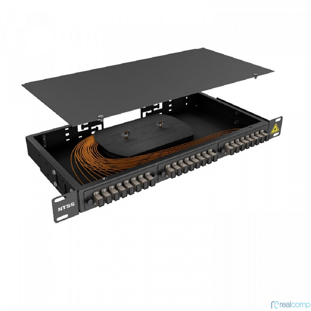 NTSS Кросс 19" NTSS PREMIUM, предсобранный 1U, 20 портов SC/UPC, 62.5/125 мкм, (сплайс, пигтейлы, кдзс, планки, адаптеры), черный, RAL9005 NTSS-RFOB-PM-1U-20-SC/U-62.5-SP1.5G1A-BL