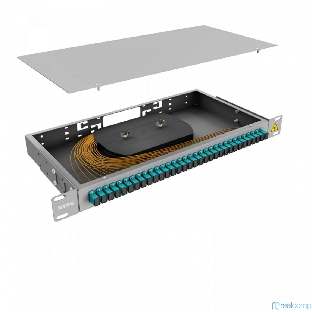 NTSS Кросс 19" NTSS PREMIUM, предсобранный 1U, 32 порта SC/UPC 50/125 мкм ОМ3, (сплошная панель, розетки, сплайс, КДЗС, пигтейлы) NTSS-RFOB-PM-1U-32-SC/U-503-SP1.5G0A