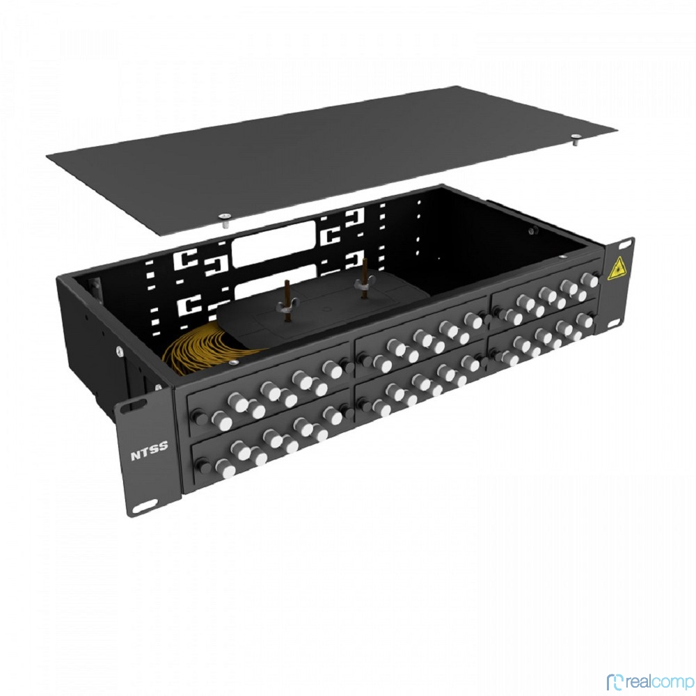 NTSS Кросс 19" NTSS PREMIUM, предсобранный 2U, 48 портов FC/UPC, 9/125 мкм, (розетки, сплайс 2шт, КДЗС, пигтейлы), черный, RAL9005 NTSS-RFOB-PM-2U-48-FC/U-9-SP1.5G2A-BL