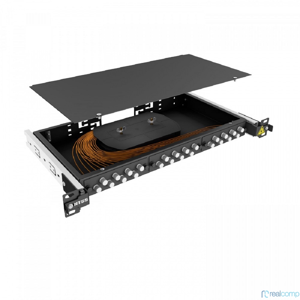 NTSS Кросс 19" NTSS PREMIUM выдвижной, предсобранный 1U, 8 портов FC/UPC, 50/125 мкм, (сплайс, пигтейлы, кдзс, планки, адаптеры), черный, RAL9005 NTSS-RsFOB-PM-1U-8-FC/U-50-SP1.5G2A-BL