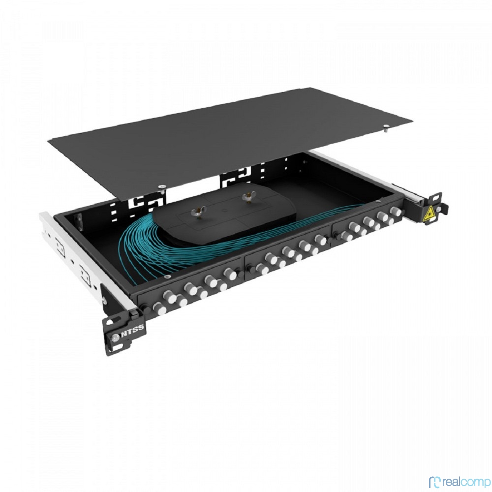 NTSS Кросс 19" NTSS PREMIUM выдвижной, предсобранный 1U, 16 портов FC/UPC, 50/125 мкм ОМ3, (сплайс, пигтейлы, кдзс, планки, адаптеры), черный, RAL9005 NTSS-RsFOB-PM-1U-16-FC/U-503-SP1.5G2A-BL