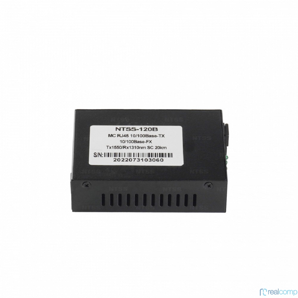 NTSS WDM медиаконвертер NTSS с RJ45 портом 10/100Base-T и 10/100Base-FX с разъемом SC, рабочая длина волны (передача/прием) 1550/1310 нм, SM, дальность до 20 км, DC 5В 2A NTSS-120B