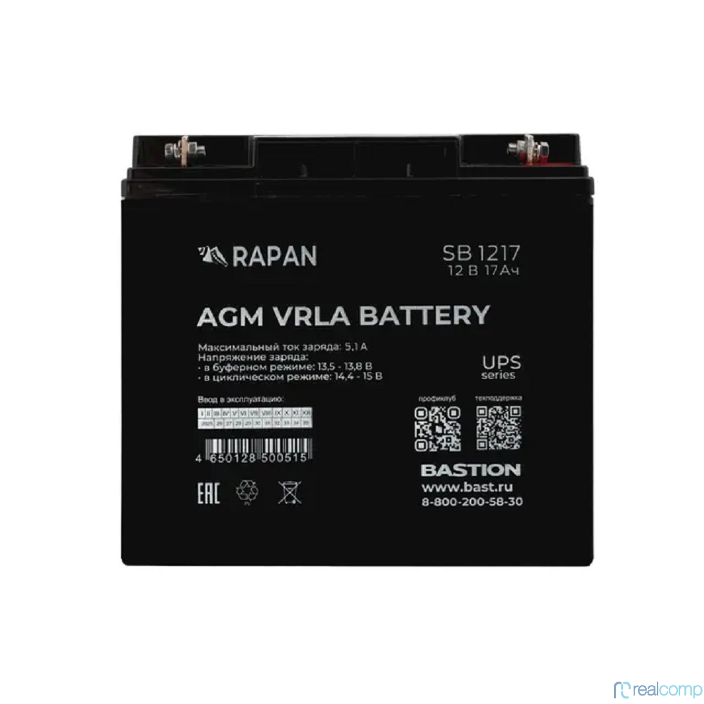 БАСТИОН RAPAN SB 1217 АКБ AGM 12V 17Ач, клеммы под болт М5 (9166)