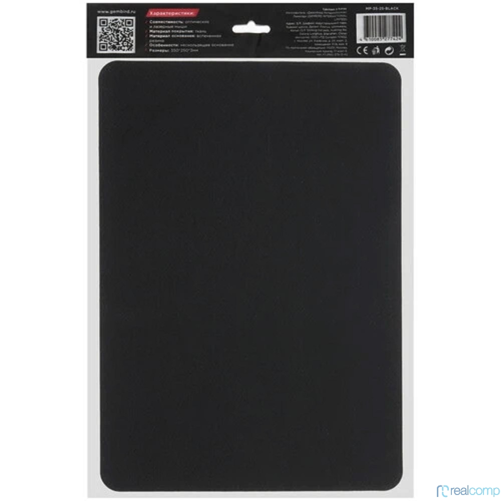 Коврик для мыши Gembird MP-35-25-BLACK, черный, 350х250х3мм, ткань+резина, пакет