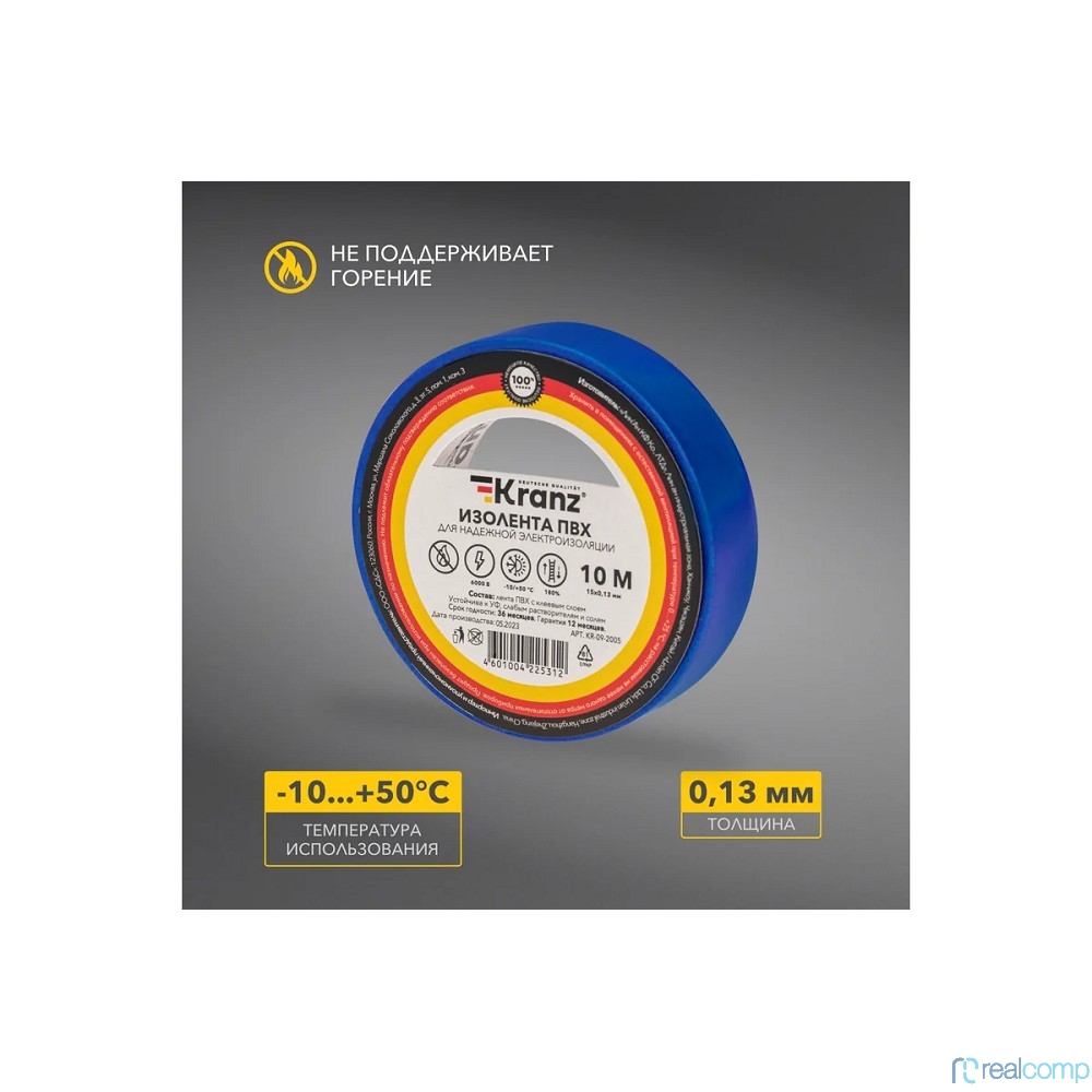 Kranz (KR-09-2005) Изолента ПВХ 0,13х15мм, 10м, синяя ( Упаковка из 10 рулонов)